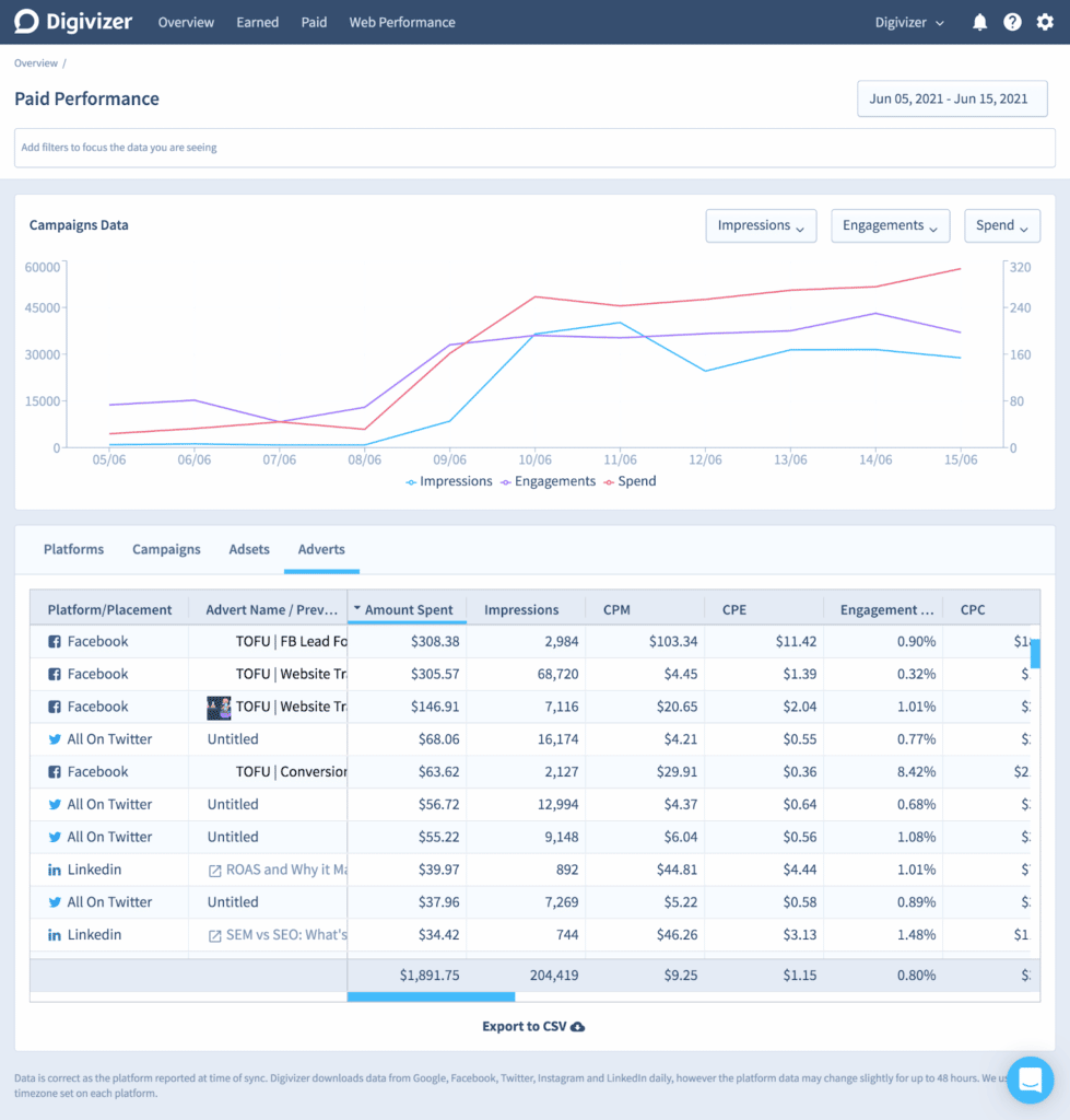 Measuring what you’ve done gives you the chance to figure out what to do better next time. You can track your results natively in Google or Bing ad platforms, and with tools like Digivizer.