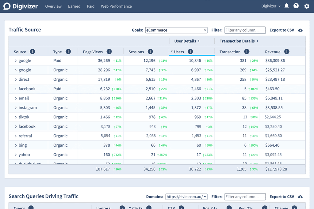 If you decide to use SEO and PPC in tandem, you’ll need a central place to measure your KPIs for both channels. Digivizer makes it easy to pull metrics from Google Analytics and Google Ads alongside and display them all in one consolidated, visual and shareable dashboard. This way you can more easily turn performance results into insights.