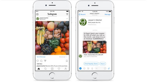 Facebook and Instagram Messenger Interactive Ads can be initiated by the brand in a Messenger chat: