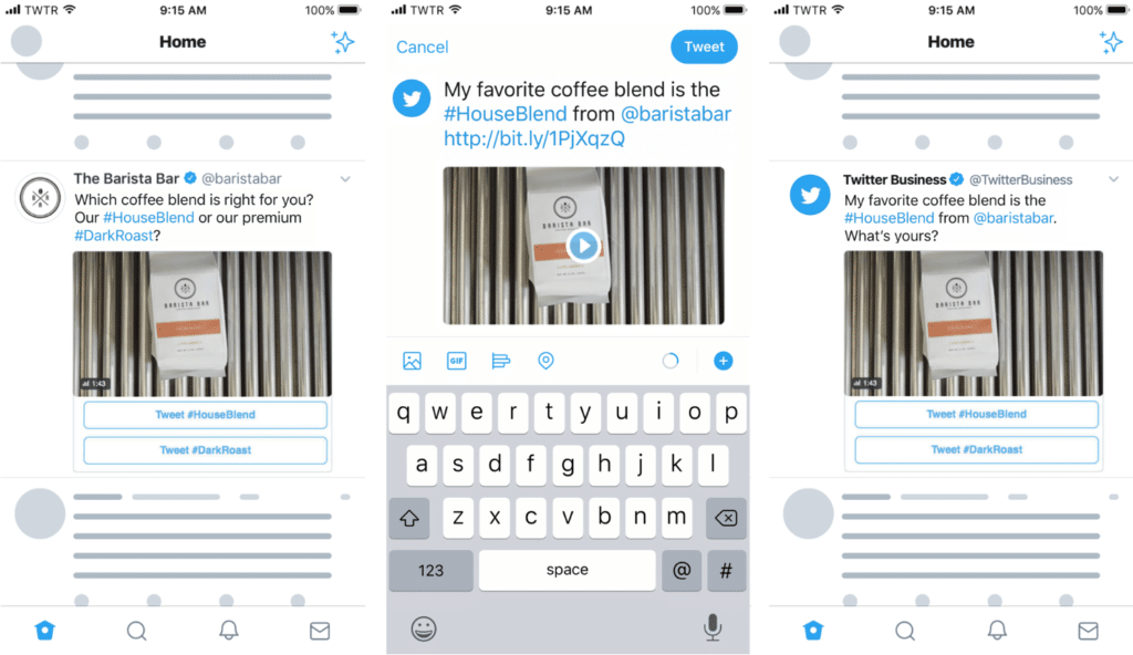 Conversational Ads on Twitter are Tweets with CTA buttons promoting certain hashtags. They’re often used by brands to fuel promotions of these hash-tagged products. Note: You have to request access to this ad format by filing a support ticket on Twitter.